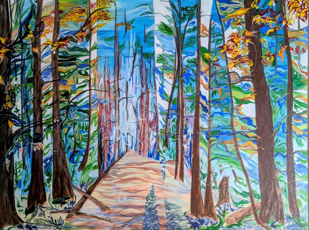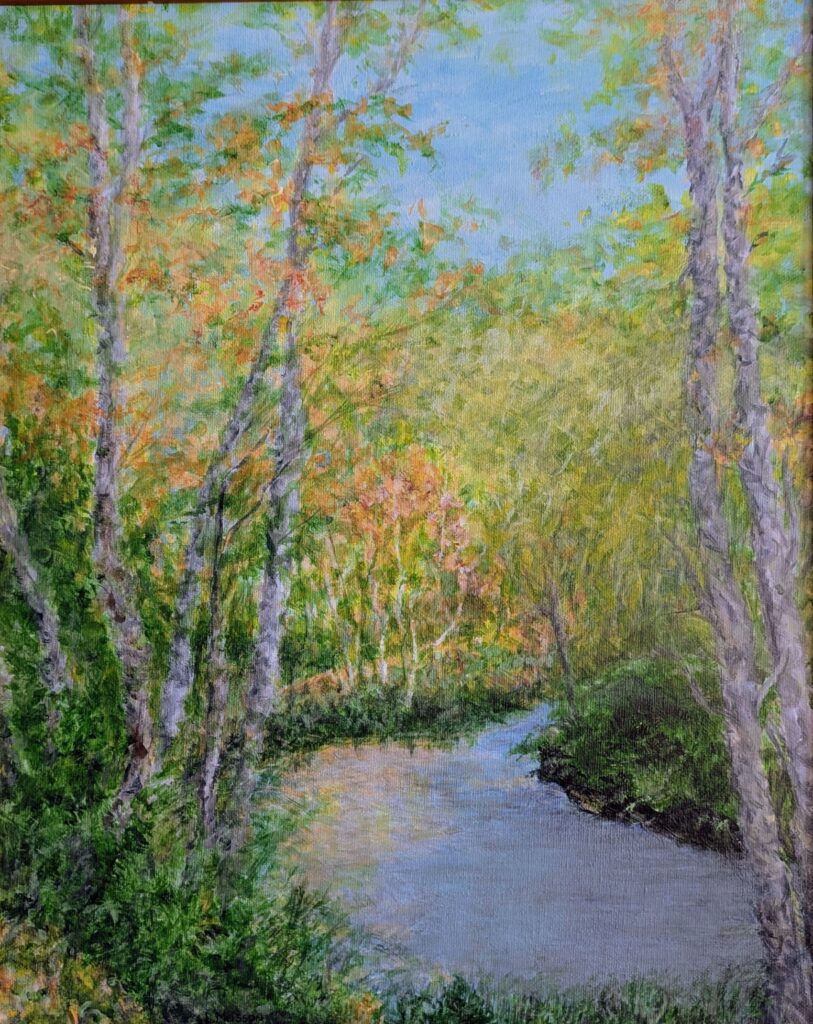 I used to be a stained glass artist, creating custom pieces and attending shows. Now I am primarily a landscape painter, whether it be realistic or impressionistic. There is something about our natural surroundings, be it trees, foliage, or water, that makes me want to capture that particular landscape.